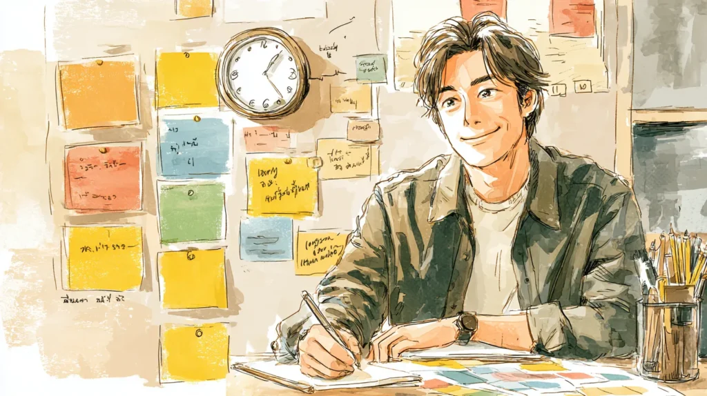 - 0〜5分:3行フレームを1枚作る(結論→根拠→具体例)
